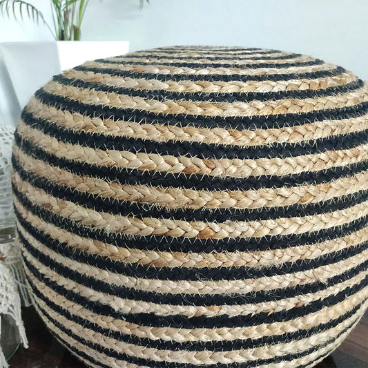 Avioni Home Eco Collection – Boho Style Braided Natural Jute and Black Pouf/Ottoman