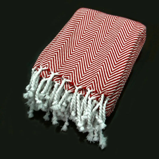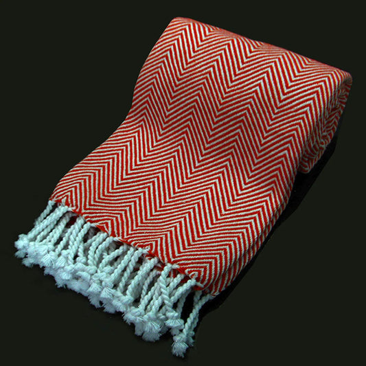 Avioni Home Premium 100% Cotton Sofa Throw / Blanket – Red & White Chevron Pattern
