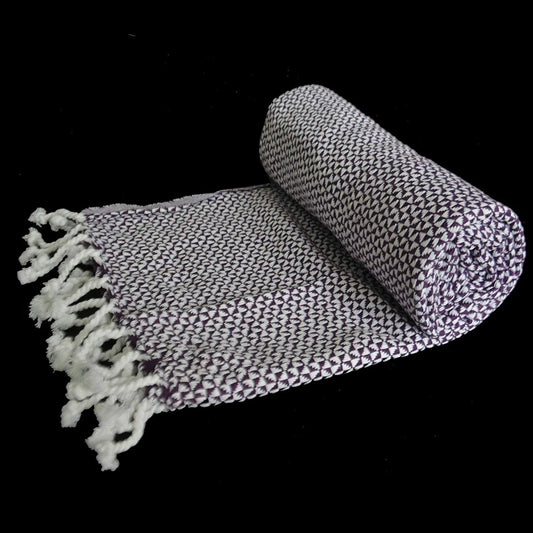 Avioni Home Premium 100% Cotton Sofa Throw / Blanket – Purple & White Pattern