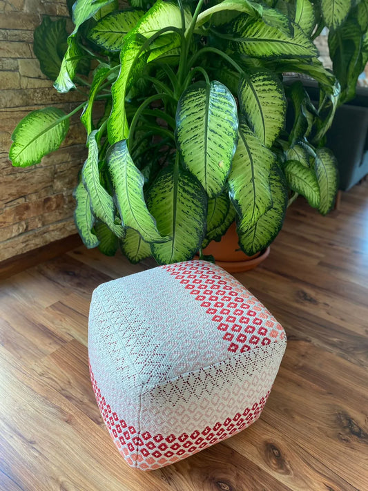 Avioni Home Boho Collection – Boho Pouf Dhurrie Covered – Red & Earth Tones