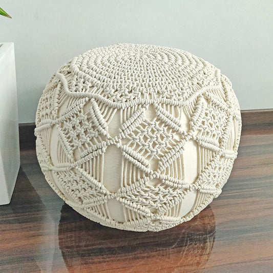 Avioni Home Boho Knotted Cotton Natural Mystic Pouf Ottoman Large Size - 35x50x50 cm
