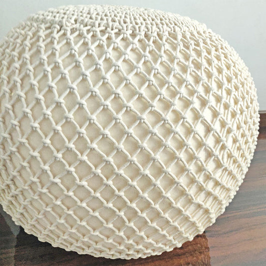Avioni Home Boho Knotted Cotton Natural Mystic Pouf Ottoman Large Size - 35x50x50 cm