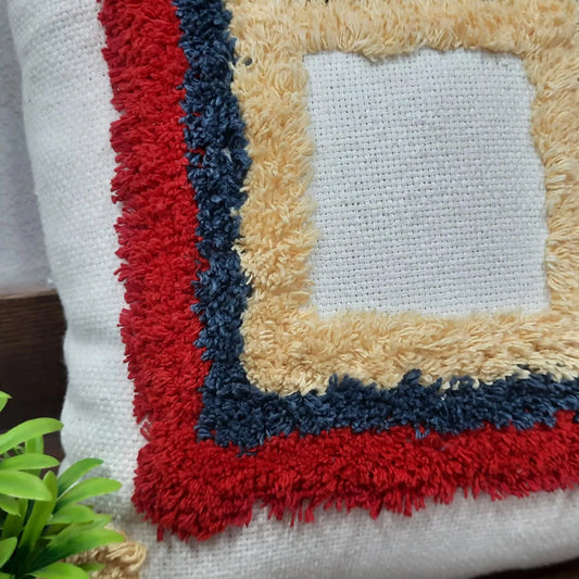 Hand Tufted 100% Cotton Sofa Cushion Cover – FREE Filler – Red And Yellow Diamond – 45×45 cms