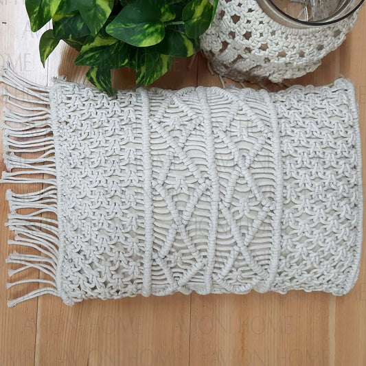 Bohemian Style Hand Knotted Macrame Cushion 100% Bleached Cotton With Filler – 30×50 cms