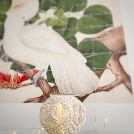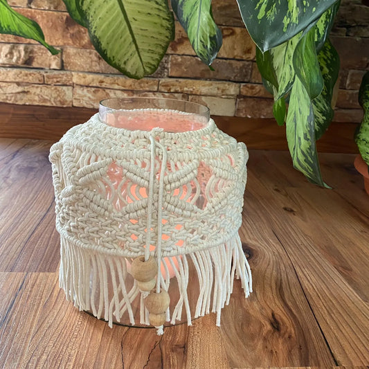 Avioni Home Boho Collection – Large Glass Hurricane Jar With Hand-knitted Macramé Cover