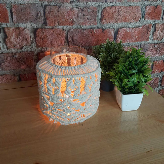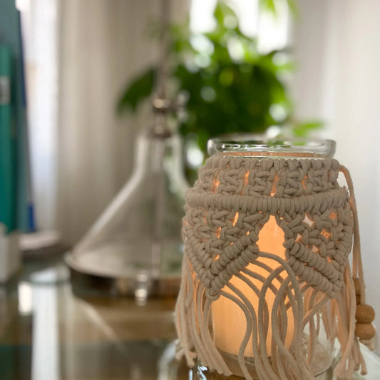 Avioni Home Boho Collection – Medium Glass Hurricane Jar With Hand-knitted Macramé Cover