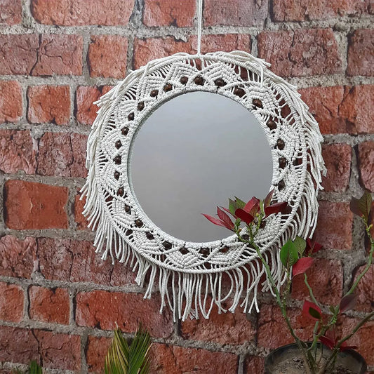 Avioni Home Boho Collection – Mirror in Macramé With Beads – 45 x 40 cm