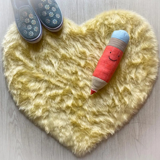 Avioni Home Shaggy Chic Collection – Heart Shaped Rug – Medium Fur – Lemon Yellow – Set of 2