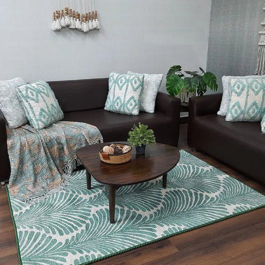 Avioni Home Faux Silk Rug for a Chic and Elegant Living Room | Calming Green Collection