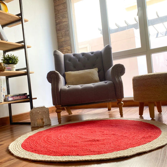 Avioni Home Eco Collection – Handmade Jute Round Rug – Red Center with Natural Jute Border