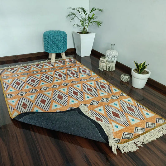 Avioni Home Faux Silk Carpet Ethnic Premium Living Room Rug Mustard
