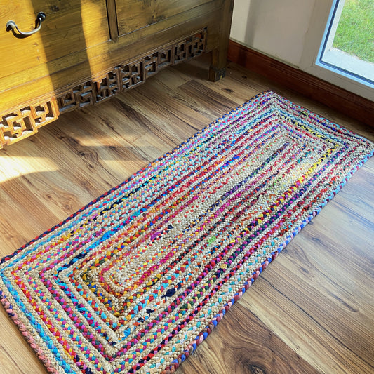 Avioni Home Eco Collection – Eco-friendly Recycled Jute & Chindi Handmade – Colorful Braided Bedside Mat – Perfect for Bedside or Kitchen