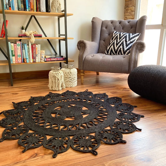 Avioni Home Contemporary Collection – Eco-friendly Black Dyed Natural Jute Handmade Braided Area Rug – Temple Design