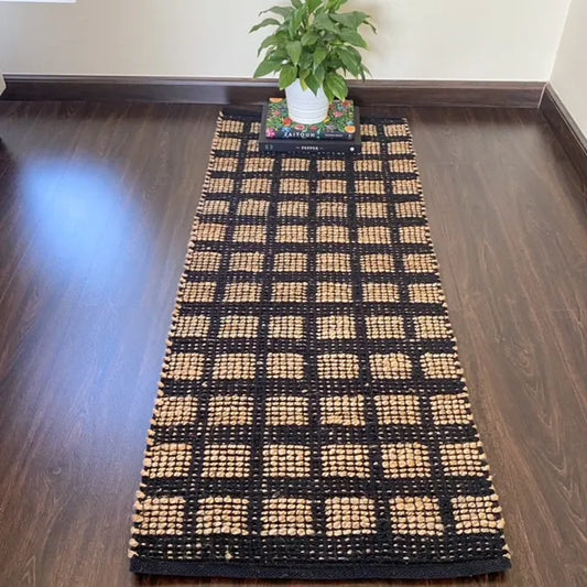 Avioni Home Eco Collection – Cotton & Jute Handwoven Square Pattern Carpet