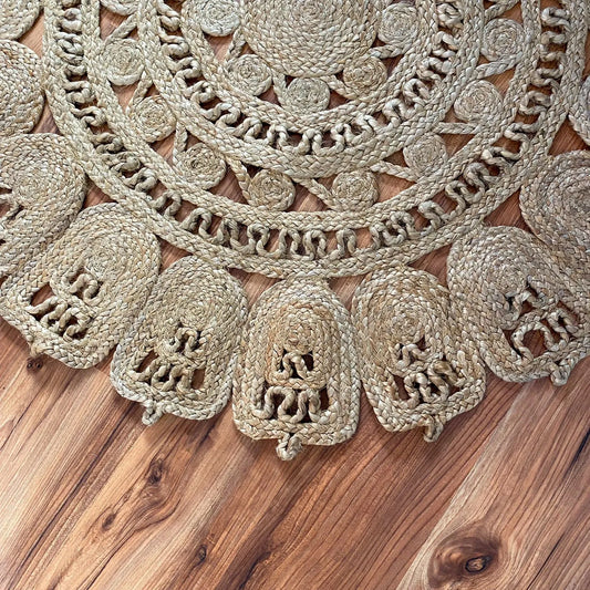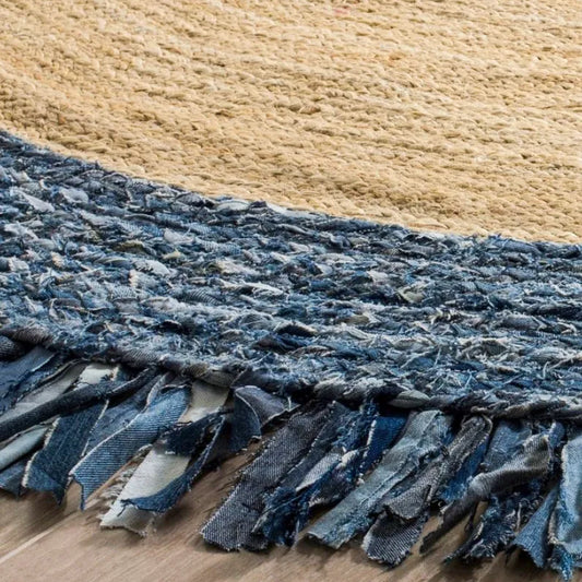 Avioni Home Eco Collection – Denim & Jute Braided Rug with Round Circle Border