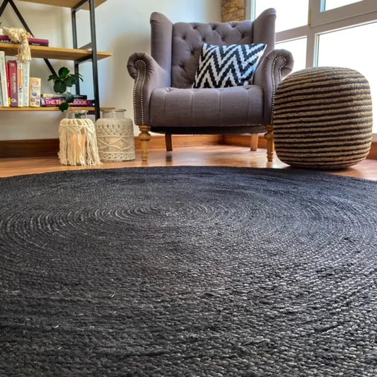 Avioni Home Eco Collection Jute Carpet – Braided Eco-friendly Circular Black Area Rug